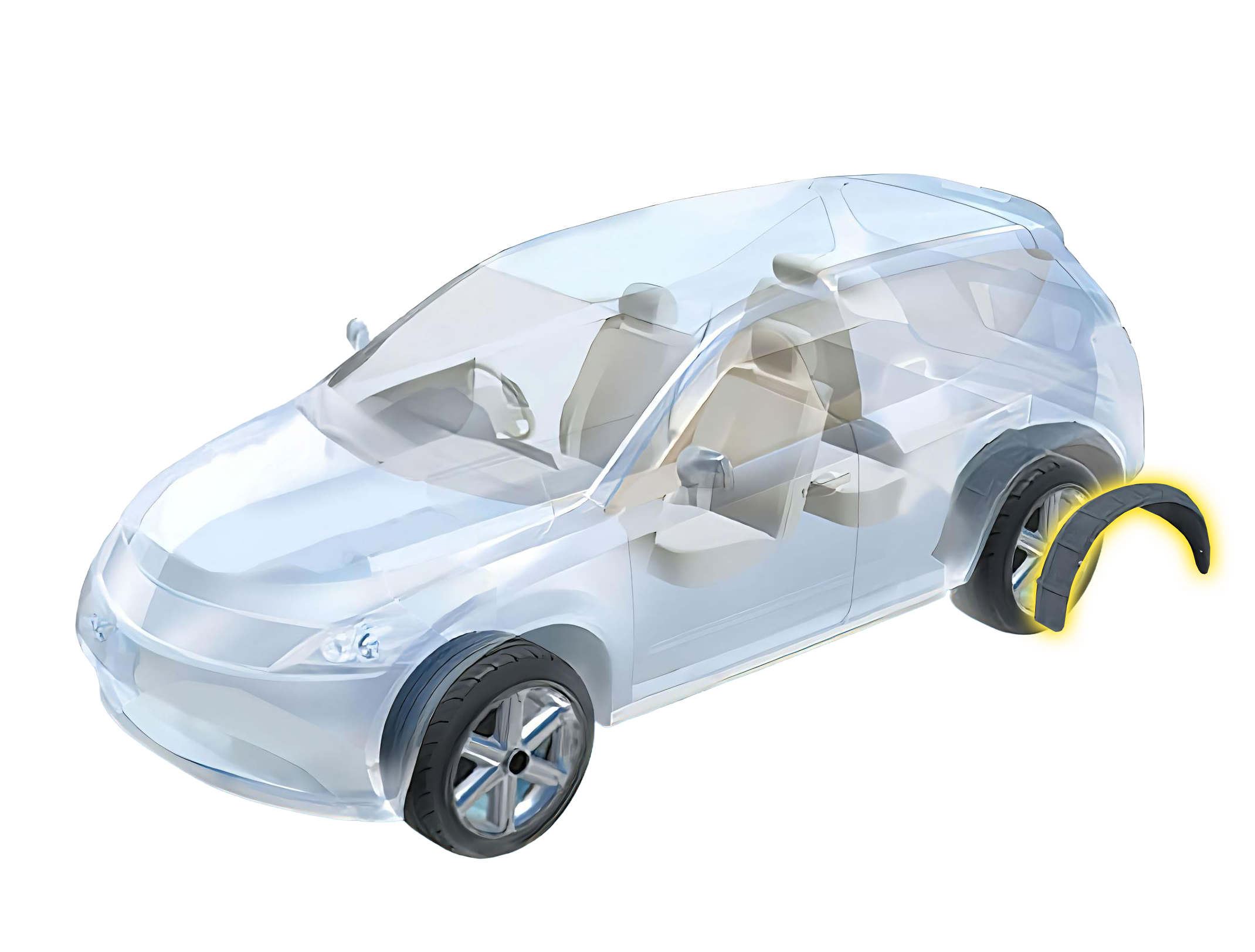 タイヤのすぐ上にあるフェンダーライナーは、走行中に飛び散る泥や小石からボディを守るのはもちろん、HOWAが得意とする繊維素材を活かすことで、ロードノイズを効果的に吸収。快適なドライブ空間に貢献している部品です。
