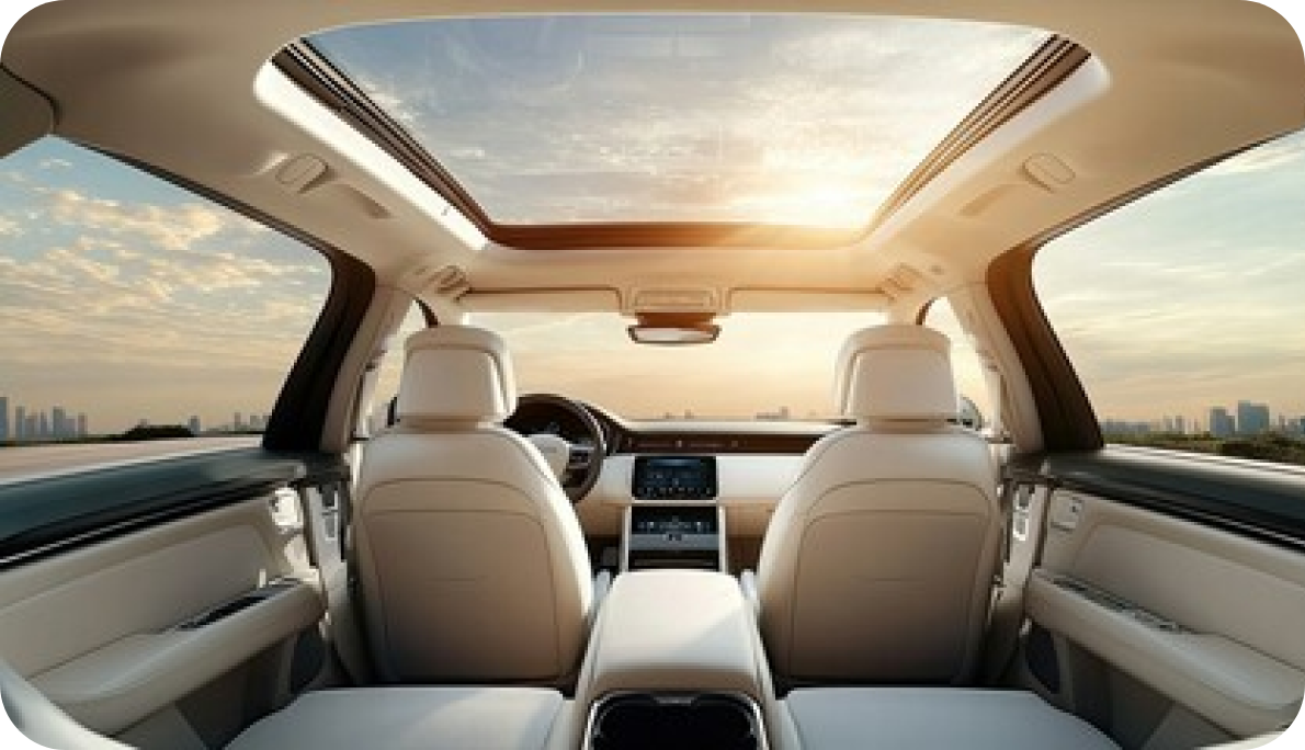 当社のサンシェードは、ただの“日よけ”ではありません。ウレタン層が外からの騒音をしっかりブロック。さらに、ガラスサンルーフから差し込む強い日差しや紫外線もカットして、車内はいつでも快適。ダントツの国内トップシェアを誇る機能部品です。
