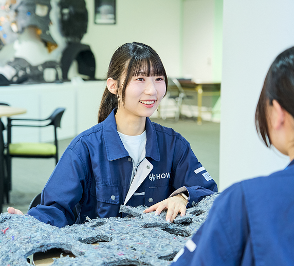 HOWAの一番の魅力は、人間関係の良さと働きやすさのバランスにあると感じています。部署間の垣根が低く、困ったことがあればすぐに誰かに相談できる雰囲気があります。他部署の先輩に設備の相談をした際も丁寧に教えていただき、知識を深めるきっかけになりました。また、同期同士の関係もとても良好で、本社にいる7人はみんな仲が良く、昼休みには4人用のテーブルに7人ぎゅうぎゅうで集まって食事をするほどです。日々の仕事のことも、ちょっとした雑談も、自然にできる関係が、精神的な支えになっています。制度面でもフレックスタイム制や有休取得のしやすさが整っており、プライベートとの両立もしやすい職場環境です。今後は、NVに関する知識をさらに深め、自動車メーカーと直接やり取りしながら受注活動からプロジェクト立ち上げまでを一人で任せてもらえる技術者を目指していきたいです。将来的には、自分の発想から新しい材料構成を提案できるような存在になりたいと考えています。