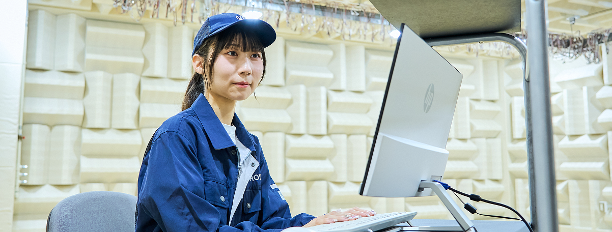 私が担当しているダッシュインシュレーターは、運転席の足元あたりにあるダッシュパネルの車室内側に取り付けられており、エンジンの音や走行中の路面からの音を抑える役割を担っています。材料の種類や組み合わせによって吸音性能は大きく変わりますが、その違いは人の耳では感じ取れないほど繊細であるため、性能評価では専用設備による数値測定が欠かせません。わずかな違いを見逃さないよう細部にまで気を配り、自分の考えた構成で期待通りの結果が得られたときには、大きな達成感があります。さらなる知識の習得に取り組むなかで、量産や設備への理解も必要だと感じ、自ら工場に足を運び、設備や工程を実際に見て学びました。こうした経験が、現場を意識した材料開発にもつながっています。NV部品は世に出るまで時間がかかるため、まだ自分が関わった製品は市場に出ていませんが、来年にはいくつかが実装された自動車が出る予定です。もし社内でその自動車を買った方がいれば、ぜひ乗せてもらいたいと今から楽しみにしています。