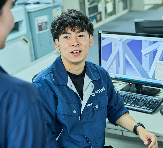 学生時代、友人と自動車で遠出することが多く、次第に車内の空間や内装に目が向くようになりました。車内で過ごす中、いつも目にしていた部品に携わりたいという思いから就職活動を進め、出会ったのがHOWAです。内装だけでなく高い音響技術を誇る点、独立系メーカーとして高いシェア率を誇り、幅広い自動車メーカーと取引している点に大きな魅力を感じました。現在は第1設計部に所属し、設計図の作成を中心に業務にあたっています。設計の仕事は、ただ図面を描くだけではありません。お客様の要望を汲み取りながら、現場での作業性や生産コストにも配慮し、社内の各部署と連携して製品仕様を形にしていく役割を担っています。仕様を確定するまでには、社内外の調整や細かな確認を重ねる必要がありますが、そのプロセスを通じて、設計がものづくりの出発点であることを実感しています。お客様にとって本当に使いやすいものを届けるには、常に相手の視点を意識して取り組むことが欠かせません。